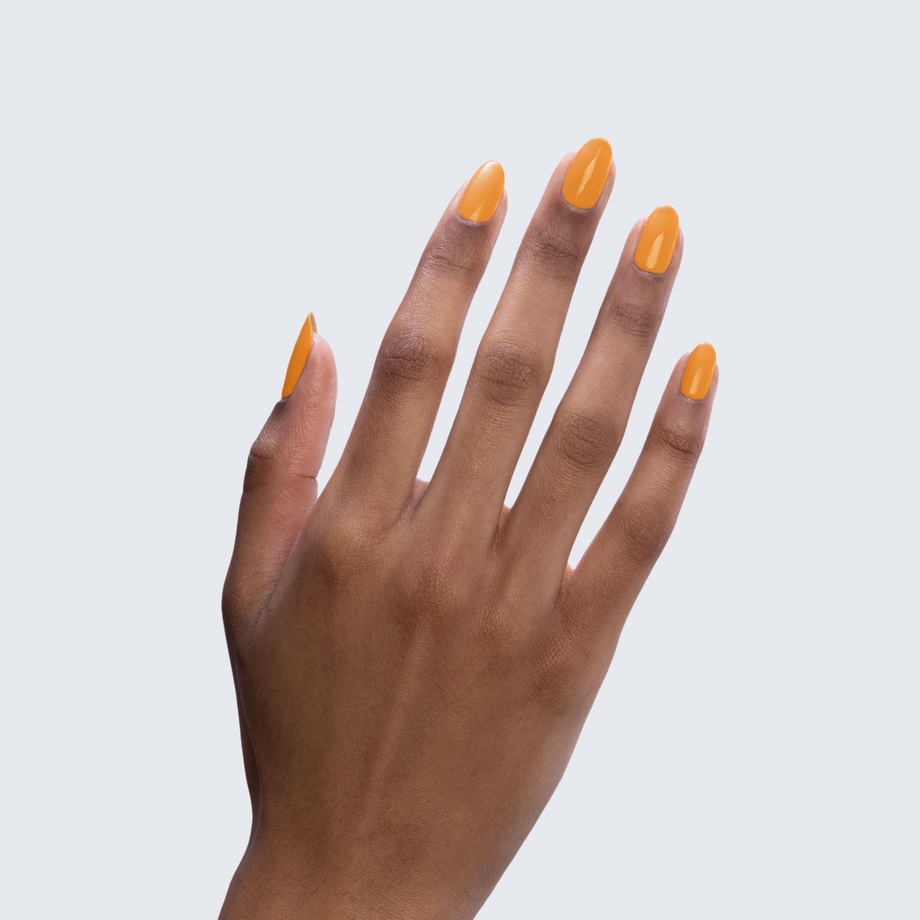 This beautifully bright orange-yellow polish glows like golden hour.